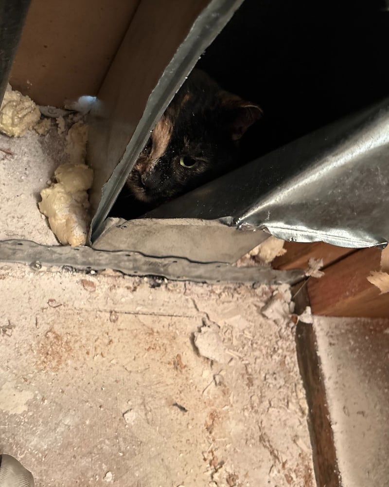 After two days of hearing noises and searching, a homeowner called firefighters for help when he learned a stray neighborhood cat got stuck inside the wall of his home.