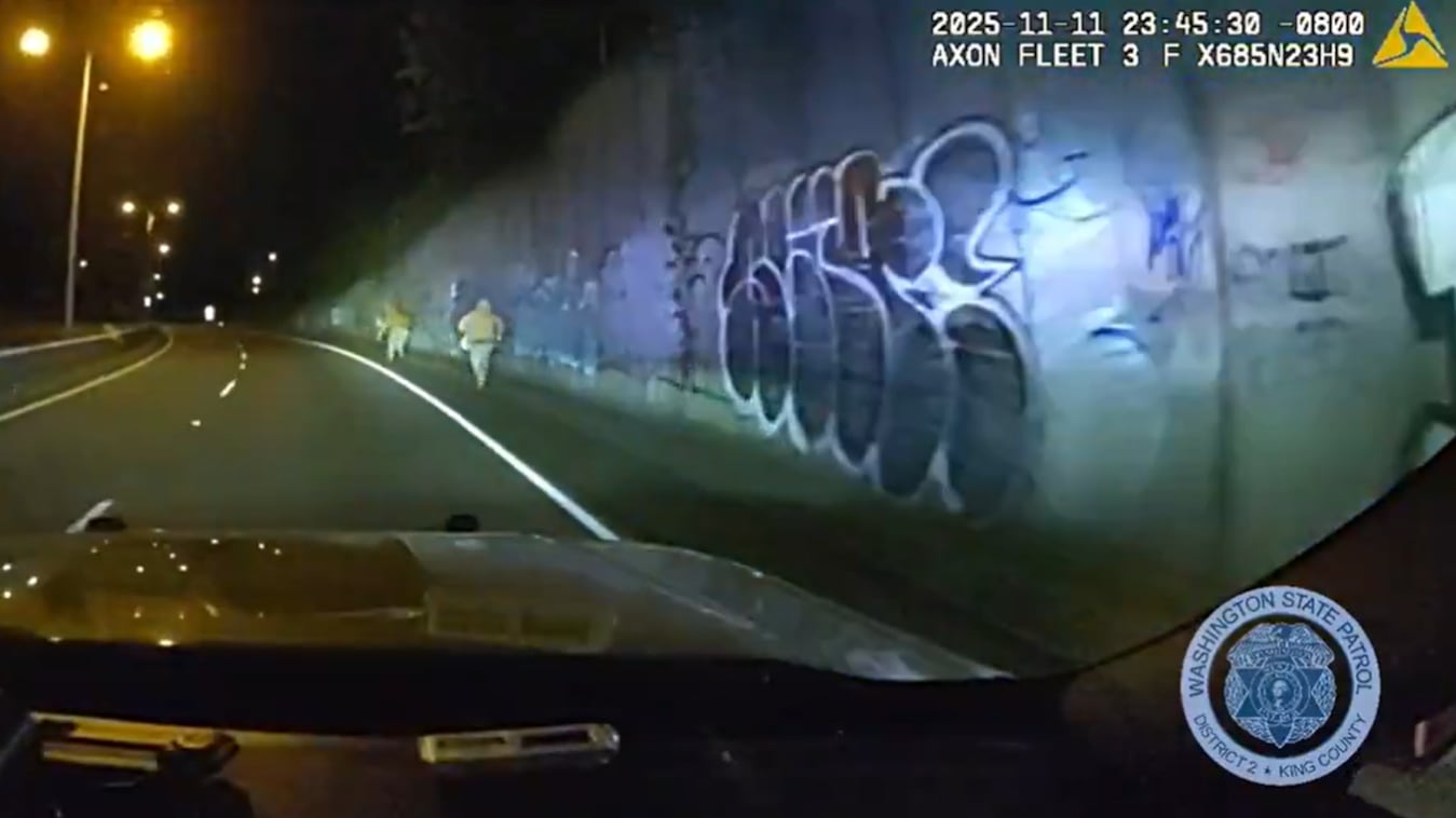 SEATTLE — The Washington State Patrol (WSP) says two men were arrested on November 11 after another driver reported seeing the pair spraypainting near a Seattle highway.