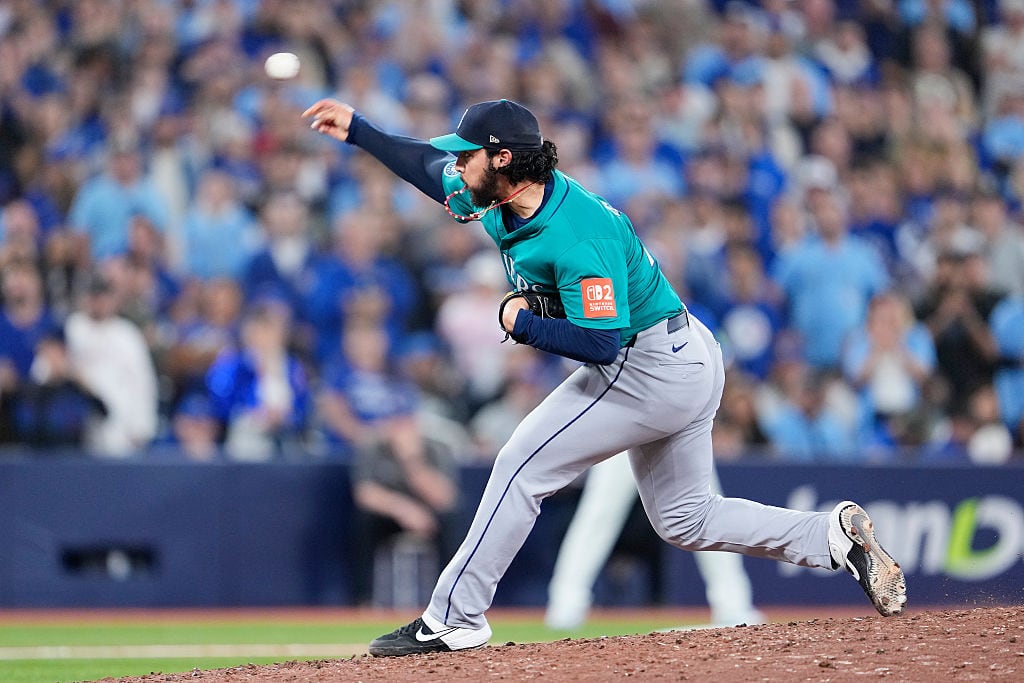7:51 p.m. - Bottom of 9: Andrés Muñoz replaces Matt Brash. Guerrero Jr. grounds out. Barger flies out. Kirk flies out. 3-1 Mariners.
